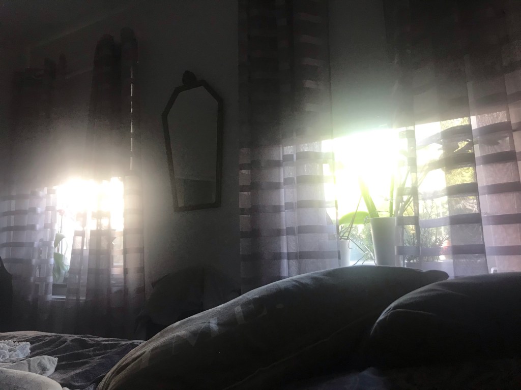 Utsikt från sängen. Jag brukar tänka att det i alla fall är vackert med morgonljuset.