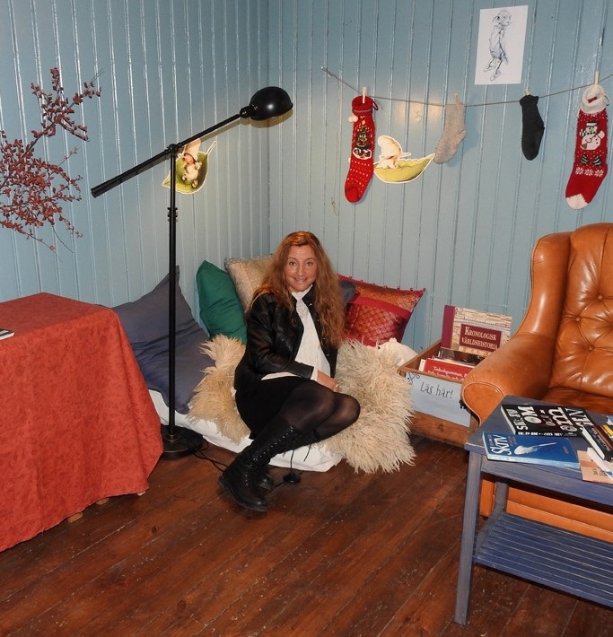 Tin undrar om jag kanske kan tänka mig att läsa upp delar av mina texter i butiken. De behöver fler aktiviteter och hon säger att det vore roligt att få in människor som bor och verkar i trakten. Det tar en stund innan det där sjunker in. Jag, ska jag sitta i en riktig bokhandel och få läsa mina texter, mina egna texter…? Kanske novellen om unga Astrid och Beda och olycklig kärlek i ett trångsynt samhälle. Vågar jag? Skulle någon vilja lyssna? Det låter ju nästan för bra för att vara sant. Plötsligt är den där mörka dagen lite ljusare, den gula soffan och fåtöljen i butikens ena hörn ser inbjudande ut och jag undrar om det är där jag kommer att sitta om jag tackar ja… Besökaren i butiken tycker det hela låter som en lysande idé och tackar ja på stående fot till att komma och lyssna.